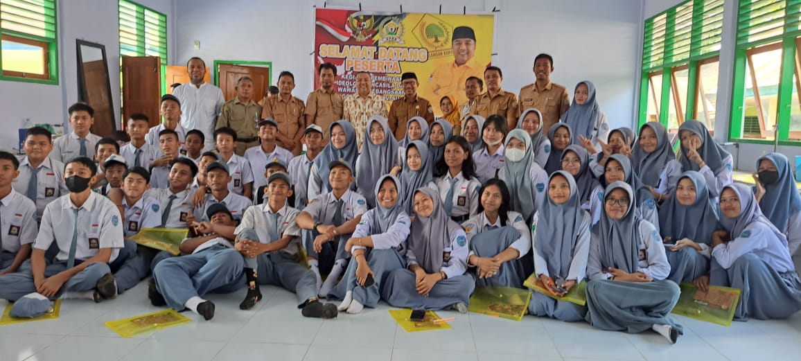 AKSARASULTRA.COM, KENDARI – Ketua Fraksi Partai Golkar DPRD Sulawesi Tenggara (Sultra), Aksan Jaya Putra (AJP) melaksanakan kegiatan sosialisasi pembinaan ideologi pancasila serta Wawasan Kebangsaanbagi sejumlah siswa SMA di kota Kendari, Senin 20 November 2023