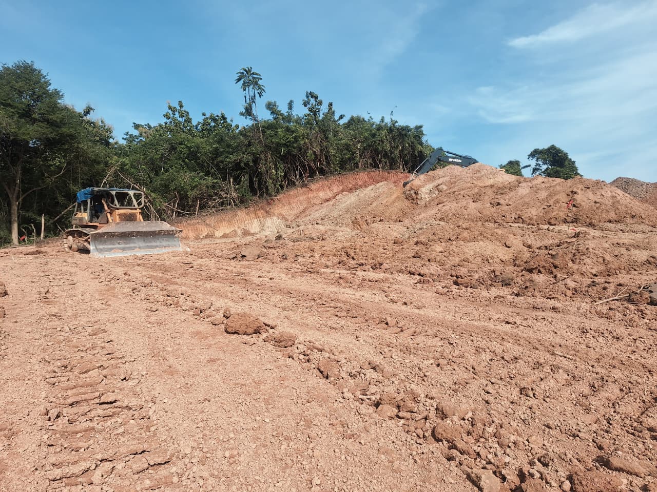 Proses pekerjaan meliputi pembersihan area pembangunan, pengupasan lapisan tanah atas (top soil), serta perataan permukaan lahan agar siap memasuki tahap pembangunan pondasi. Seluruh pekerjaan dilaksanakan oleh operator alat berat PT. WIN dengan tetap mengutamakan standar keselamatan kerja serta memperhatikan kondisi lingkungan sekitar.