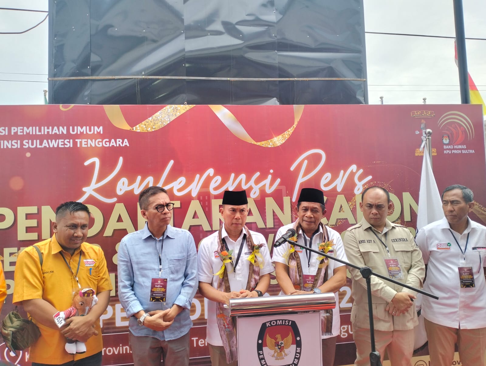 Dengan didampingi beberapa Ketua partai, diantaranya Ketua DPW PAN Sultra Abdurrahman Shaleh, Ketua DPD Gerindra Sultra Andi Ady Aksar dan perwakilan partai pendukung lainnya.