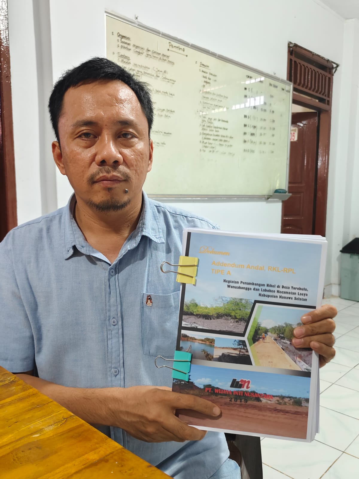 Project Manager PT WIN, Nur Iman saat memperlihatkan izin Amdal perusahaan. Foto ist