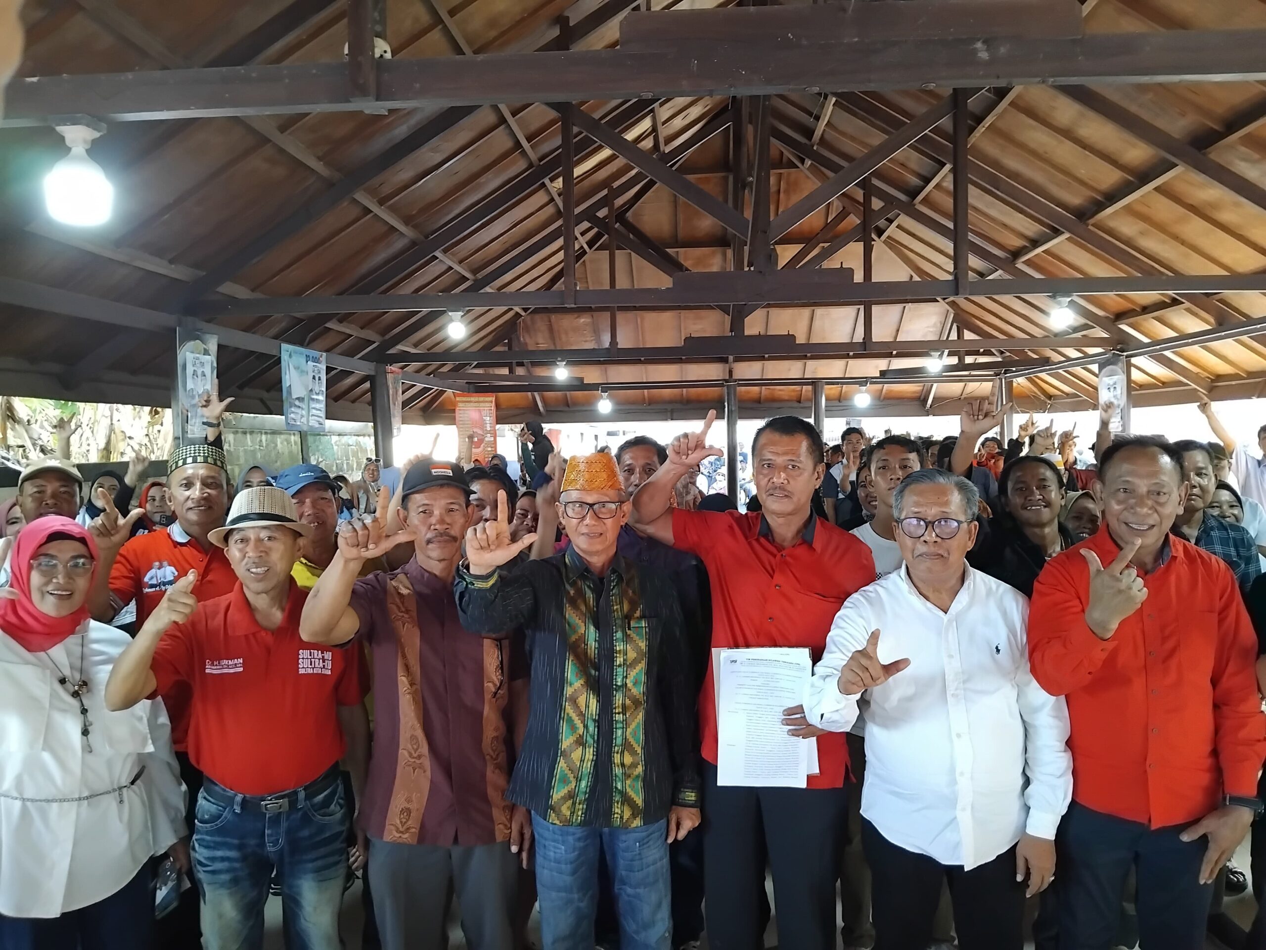 Ketua TPS Konut Ir. Sahrudin sami, M.Si bersama 301 relawan sebagai Tim Pemenangan Sultra (TPS) di Kabupaten Konawe Utara pada Sabtu (24/8/2024).